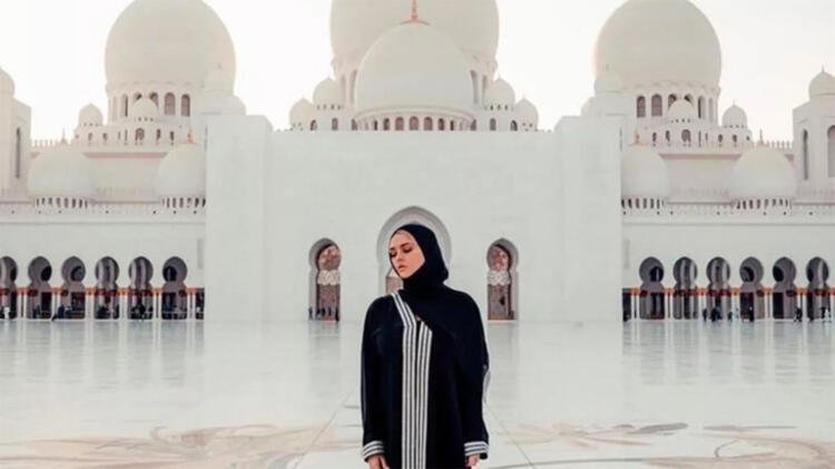 Geçtiğimiz günlerde Birleşik Arap Emirlikleri’ne giden Wolanski, bikinili ve yarı çıplak pozlarının aksine bu kez cami ziyareti yaptı ve tesettürlü kıyafetiyle poz verdi.
