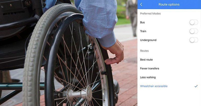 Google, Mart 2018’de tekerlekli sandalyelere uygun yolları göstermek için yeni bir hizmet başlattı. Yapılan güncelleme ile beraber Haritalar’da artık tekerlekli sandalyelere uygun rotalara erişilebiliyor.