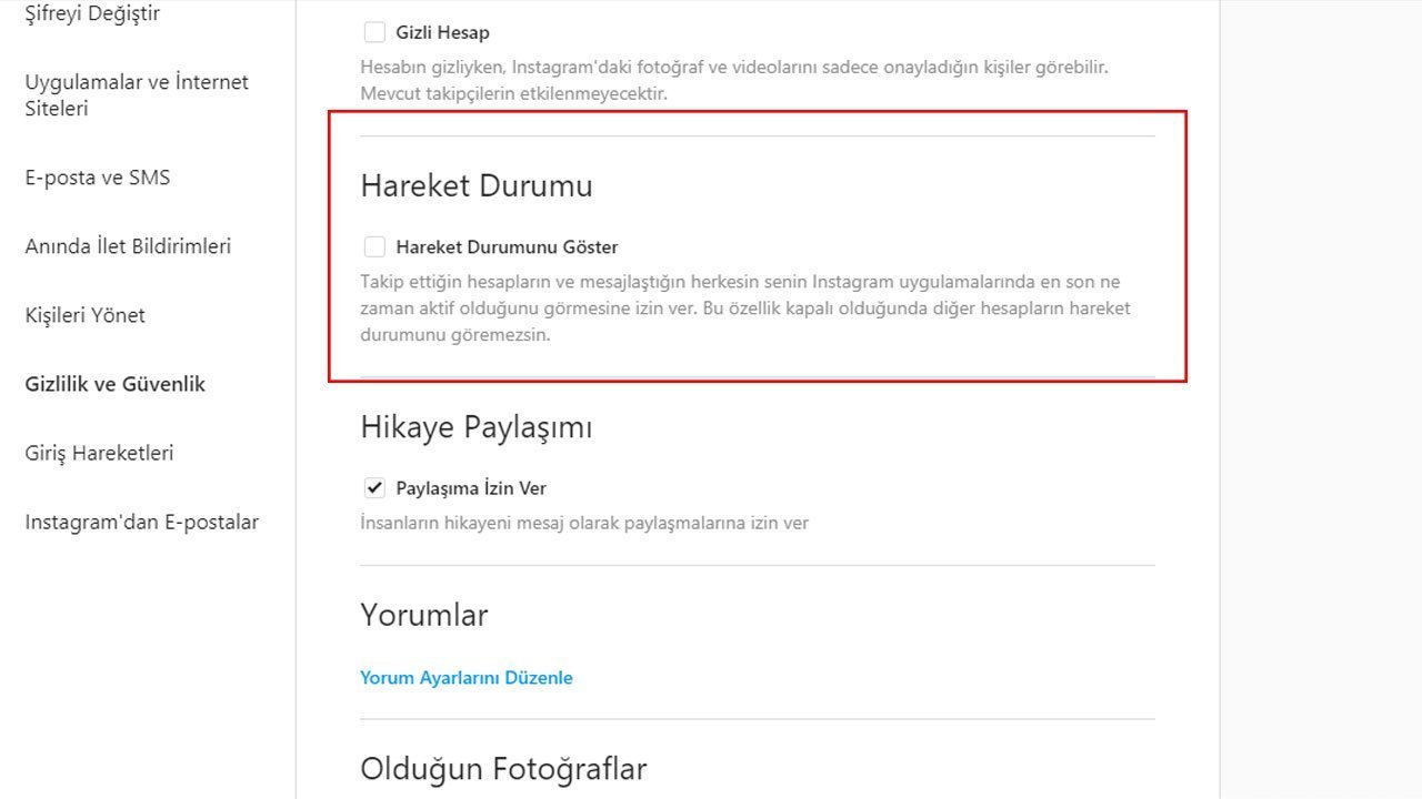 Instagram son görülme özelliği bilgisayardan nasıl kapatılır?