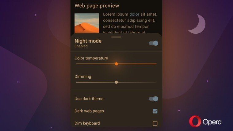 Anroid için 55.0 sürümünü yayınlayan Opera, yeni güncellemeyle birlikte gece modu tasarımını yeniledi. Android cihazlar için gece modu desteğini uzun zamandır sağlayan internet tarayıcısı, geride bıraktığı 55.0 sürümüyle birlikte bu özelliği tamamen sıfırdan tasarladı. Yenilenen gece modu, yayılan mavi ışık miktarını en aza indirgerken aynı zamanda ek karartmaya da olanak sağlıyor ve pek çok renk ayarını beraberinde sunuyor.