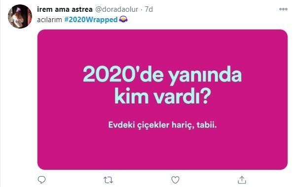 Twitter gündemine düşen “SpotifyWrapped” etiketiyle ilgili binlerce paylaşım yapılıyor. Yapılan paylaşımlar, birbirinden efsane yorumlarla dolu. Biz de bu haberimizde sizler için, söz konusu gündem konusu altında paylaşılan en komik yorumlardan derledik. Dilerseniz hemen, Spotify’ın 2020 Özeti listesi için hazırlanan o paylaşımlara geçelim.
