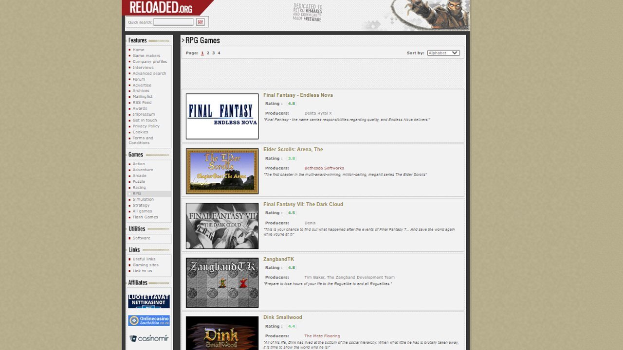 Genel olarak klasik ve retro oyunların ücretsiz yazılım toplulukları tarafından yeniden yapımlarına odaklanan Reloaded’da birçok klasik oyunun “remake” versiyonuna ve klasik olan ve artık dağıtımı bulunmayan oyunlara ücretsiz olarak erişilebiliyor. Oyunların güzel açıklamalarla ve ekran görüntüleriyle kolay ve anlaşılabilir şekilde sunulduğu Reloaded, ziyaret edebileceğiniz en iyi ücretsiz oyun indirme sitelerinden biri.