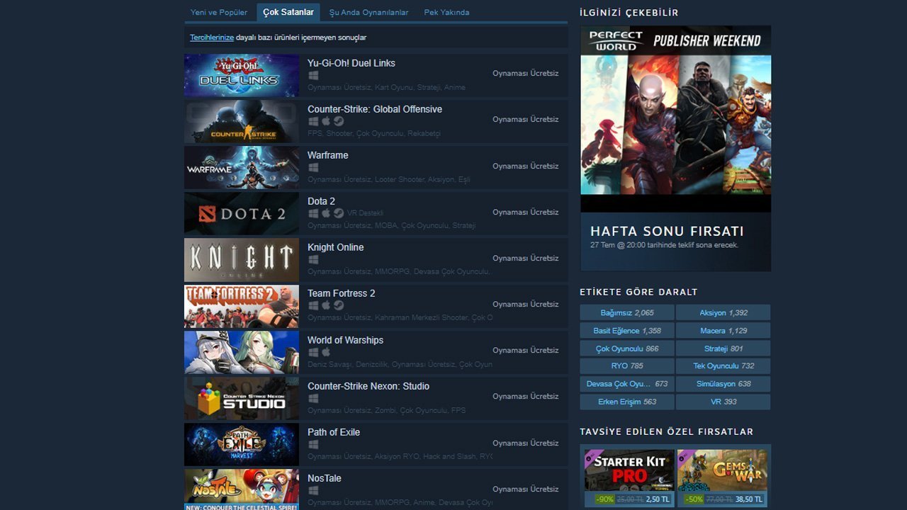 Hepimizin bildiği ve dünyanın en çok kullanılan oyun satın alma platformu olan Steam’de birçok ücretsiz oyun da sunuluyor. Oyun dünyasında reklam değeri olan büyük şirketlere ait birçok ücretsiz oyunun listelendiği Steam’de, hepimizin yıllardır severek oynadığı Dota 2, CS:GO ve Knight Online gibi tüm dünyanın bildiği ve oynadığı oyunlar ücretsiz olarak sunuluyor. Bu oldukça popüler olan oyunlardan artık sıkılmışsanız bile Steam’de hâlâ keşfedebileceğiniz birçok ücretsiz kaliteli yapım bulunuyor.