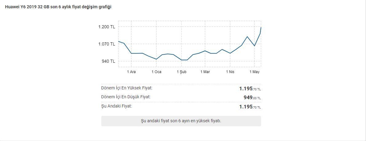Huawei’nin piyasada bulunan en uygun akıllı telefonlarından olan Y6 2019, geçtiğimiz dönemlerde 1.000 TL’nin altındaki fiyat etiketiyle çokça tercih ediliyordu. Telefonun güncel fiyatıysa 1.200 TL seviyesinde.