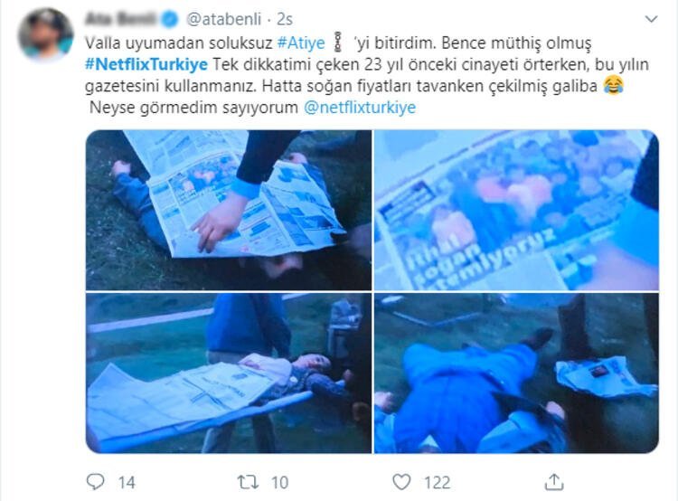 Dizinin bir sahnesinde 23 yıl önceye gidildi. Bu sahnede cesedin üzerini örterken kullanılan gazetenin günümüze ait olması, izleyenleri güldürdü.